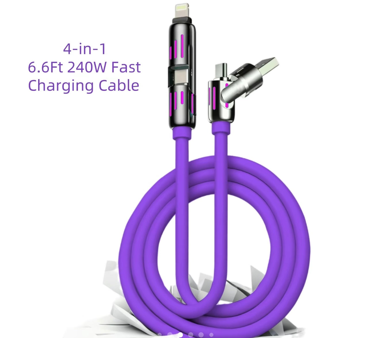 ✅ 4-in-1 Charging Cable – 2 USB-C, 1 USB-A, 1 Lightning
