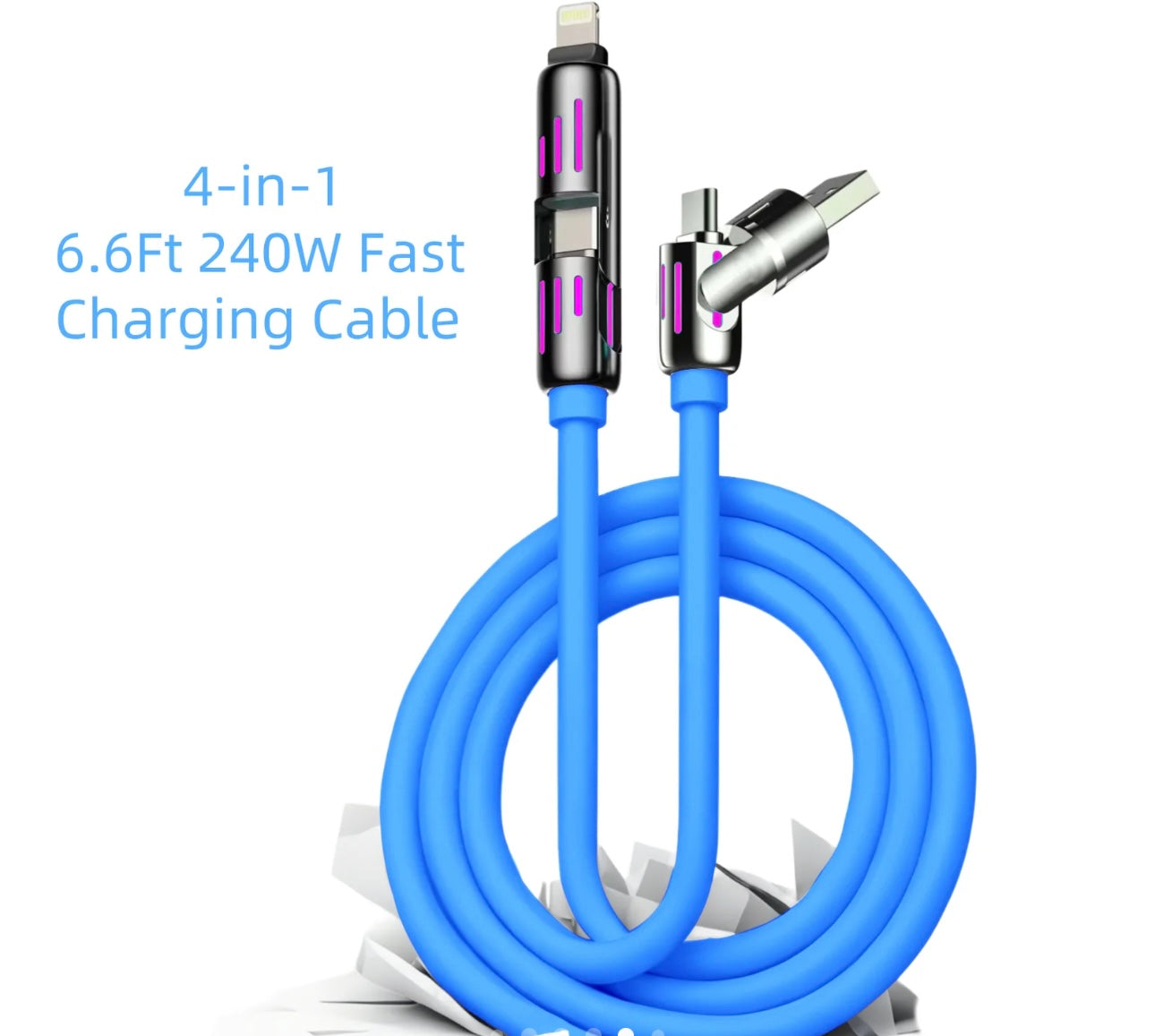 Electric Wave Set ⚡Blue • Orange • White ⚡3 PACK Brite Lights PLUG 4-in-1 Charging Cable | 6.6ft Multi USB Charger | 2-Type-C And 1-Lightning, 1-USBA Detachable connector | Free Shipping (Copy)